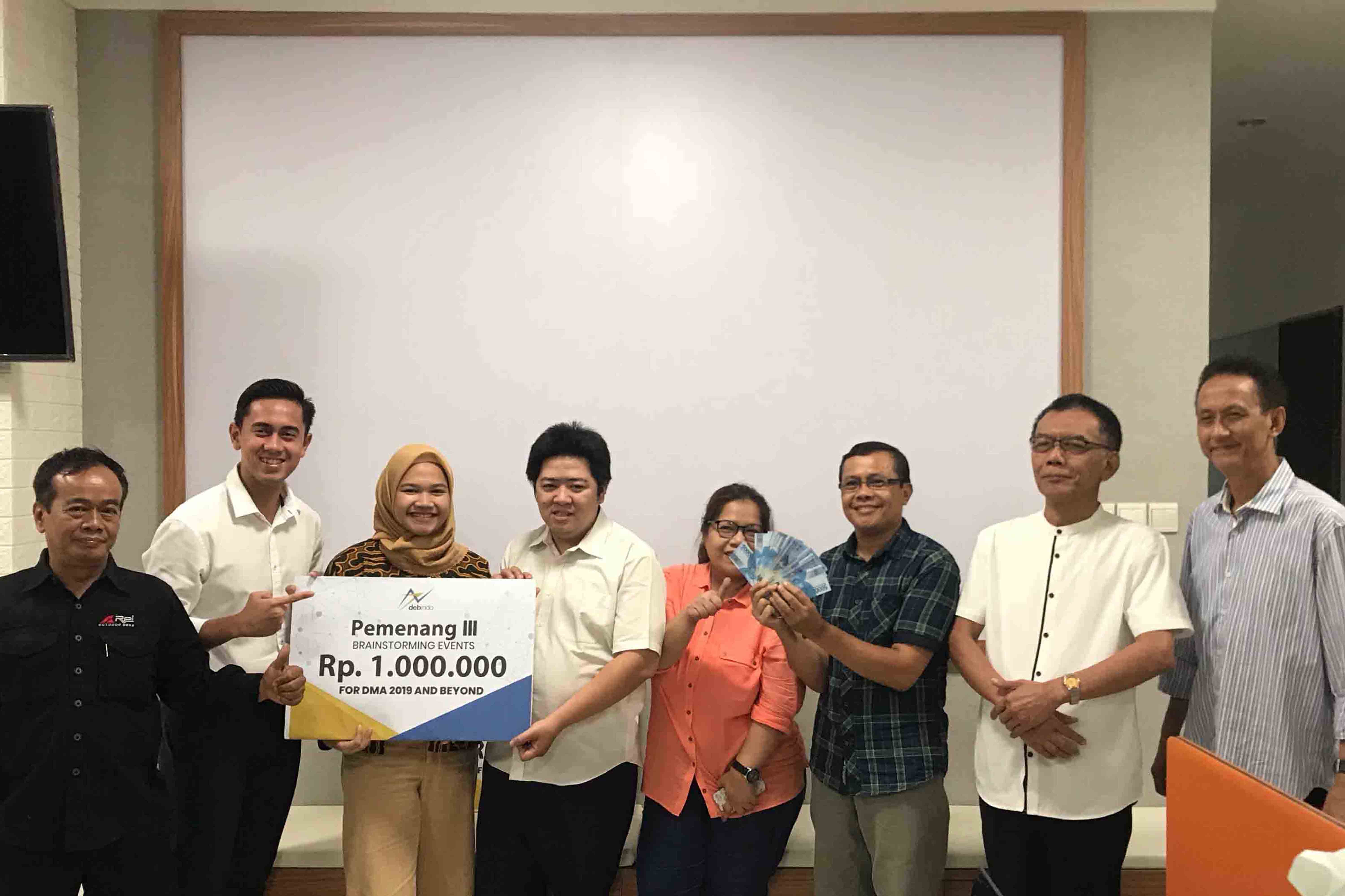 The management has put employees into some groups. The group contains employees from a different department in the company. Debindo believes different skill sets and experiences will give a great mix of new perspectives and contextual knowledge which help the group to create original and doable ideas. Employees are encouraged to let their imaginations grow by using a wishing technique. They were asked to come up with wildest and extreme ideas to create new projects. After that, focusing on a selection of project wishes, consider and discuss the ideas in detail, with the aim of triggering new but more realistic concepts to pursue. They were given one week to prepare for the final presentation which was judged by Mr. Dwi Karsonno, Mr. Budiarto Linggowijono, and Mr. Aris Wijaya.